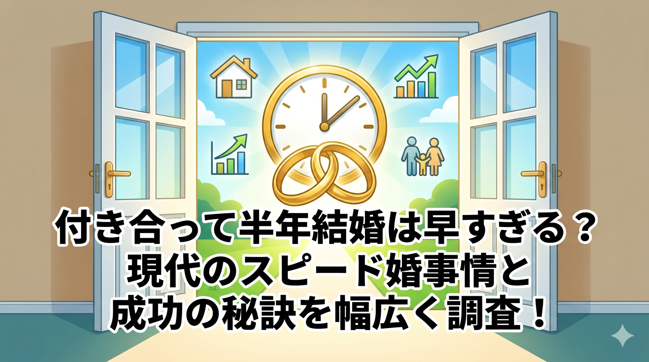 結婚という人生における極めて重要な決断を下す際、交際期間の長さは多くの人が強い関心を持つテーマです。世間一般的には、数年間の交際を経てお互いの性格や価値観を深く理解した上で結婚に至るのが理想的であると見なされる傾向が根強く存在します。しかしながら、現代社会においては「付き合って半年結婚」という、いわゆるスピード婚を選択するカップルも決して珍しい存在ではありません。このような短期間での結婚決断に対しては、「早すぎて相手の本性を見抜けないのではないか」「結婚後に価値観の違いが露呈して離婚に至る確率が高いのではないか」といった懐疑的な見方や懸念の声が周囲から上がることも少なくありません。その一方で、「直感的に運命の相手だと確信できた」「結婚を前提として交際を始めたため、無駄な時間を過ごす必要がなかった」「年齢的な焦りやライフプランを考慮すると、半年という期間は合理的かつ最適であった」と主張し、実際に幸福な結婚生活を長期間にわたって営んでいる夫婦も多数存在します。このように、「付き合って半年結婚」には賛否両論が渦巻いており、一概に正しいとも間違っているとも断言できない複雑な要素が絡み合っています。現代社会は個人のライフスタイルや価値観がかつてないほど多様化しており、結婚に対する考え方やパートナーシップの在り方も千差万別です。生涯未婚率が上昇を続け、結婚そのものを選択しない人生も一般化する中で、あえて結婚という制度を利用し、しかもそれを交際半年という短期間で決断する背景には、現代ならではの社会的要因や心理的メカニズムが深く関与していると考えられます。本記事では、「付き合って半年結婚」という現象を多角的な視点から徹底的に分析し、その実態や背景にある社会的要因、短期間で結婚を決断する人々の心理、そして何より短期間の交際を経て結婚し、長期的に安定した夫婦関係を構築するための具体的な秘訣やリスク回避の方法について幅広く調査し、詳細に解説していきます。交際期間の短さに不安を感じている方や、スピード婚を視野に入れて活動している方にとって、有益な判断材料となる情報を提供することを目指します。