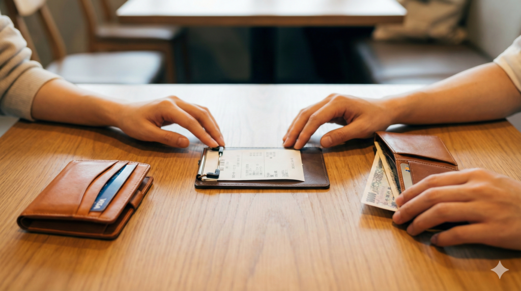 会計の際、レジ前でもたつくのは最も避けたい事態です。伝票が置かれた時点で、あるいは席を立つ前に、あらかじめ財布を準備しておくのがスマートです。また、相手が支払う意思を見せている場合でも、まずは自分が全額払う姿勢を見せることがマナーとして推奨されます。その上で「ここは割り勘にしよう」と提案されたら、素直に応じるのが良いでしょう。最初から「いくら?」と聞くのではなく、支払う意思があることを態度で示すことが、相手への敬意として伝わります。