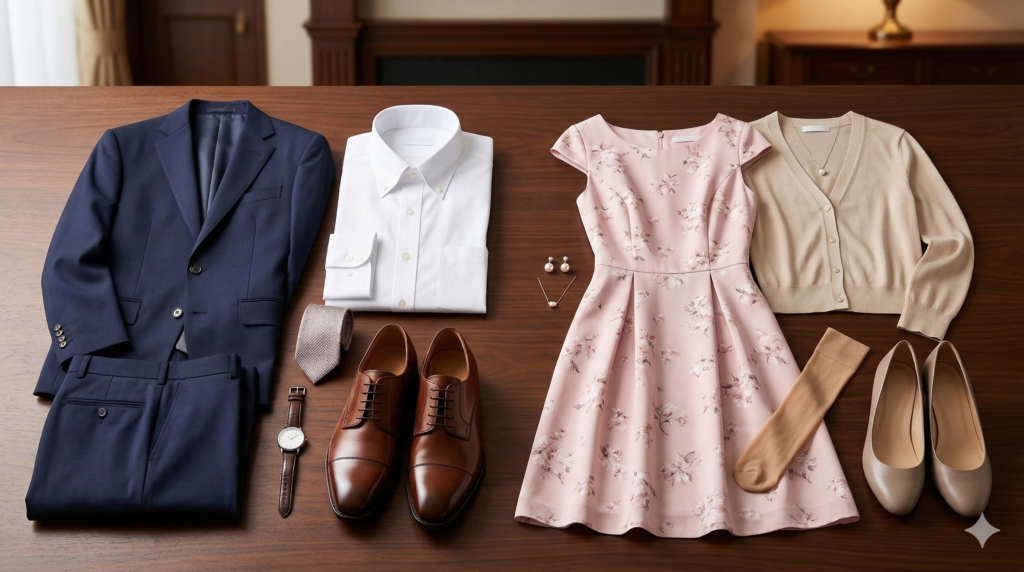 同棲の挨拶における服装の基本は、何よりも「清潔感」と「誠実さ」をアピールすることです。ここでは、男性と女性それぞれに求められる服装のポイントを詳細に解説します。