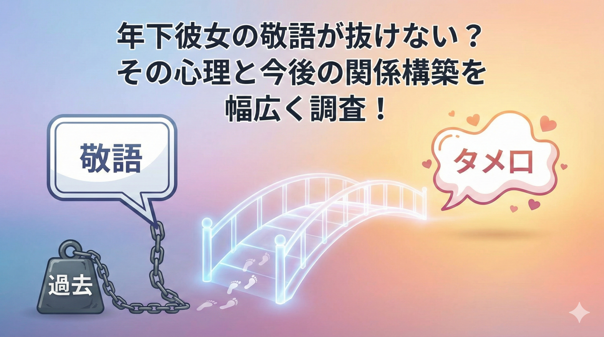 男性にとって、年下の女性とのお付き合いは新鮮であり、守ってあげたいという庇護欲を掻き立てられる魅力的な経験です。しかし、交際がスタートしてしばらく経過しているにもかかわらず、会話の中で常に敬語が使われ続けると、本当に心を開いてくれているのか、二人の間に見えない壁が存在しているのではないかと不安を感じる方も少なくありません。「年下彼女の敬語が抜けない」という悩みは、年齢差のあるカップルにおいて頻繁に直面するテーマの一つです。敬語は本来、相手への敬意を示す美しい言語表現ですが、恋人という親密な関係性においては、時に距離感を感じさせる要因となってしまいます。なぜ彼女は敬語を使い続けるのか、そこには単なる癖以上の複雑な心理や、過去の経験、あるいは二人の関係性の始まり方が深く関わっています。本記事では、敬語が抜けない年下彼女の深層心理から、その背景にある社会的・個人的な要因、そして二人の心の距離をさらに縮め、より自然で親密な関係を築くための具体的なアプローチ方法までを多角的な視点から詳細に解説します。相手の気持ちを深く理解し、焦らずに適切なコミュニケーションを重ねることで、敬語という表面的な言葉の壁を越えた、真の信頼関係を構築するためのヒントを探っていきましょう。