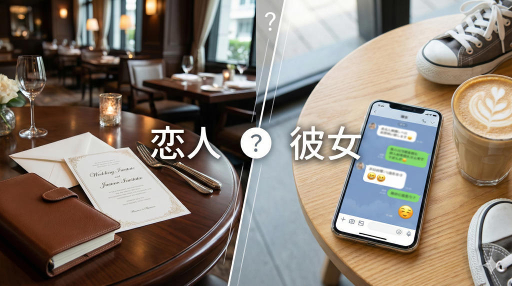 英語における「Girlfriend」と「Lover」の違いと比較すると、日本語の「彼女」と「恋人」の違いがより理解しやすくなります。英語の「Girlfriend」は日本語の「彼女」とほぼ同義で、カジュアルな交際から真剣な交際まで幅広く使われます。一方、英語の「Lover」は肉体的な関係性を強く示唆する場合や、非常に情熱的なニュアンスを含むため、日常会話で「She is my lover」と紹介するのは稀です。日本語の「恋人」は英語の「Lover」ほど肉体的なニュアンスに限定されず、プラトニックな関係でも使われますが、精神的な崇高さを含んでいる点では共通しています。この国際的な比較からも、日本語の「恋人」が持つ独特の情緒性が浮き彫りになります。