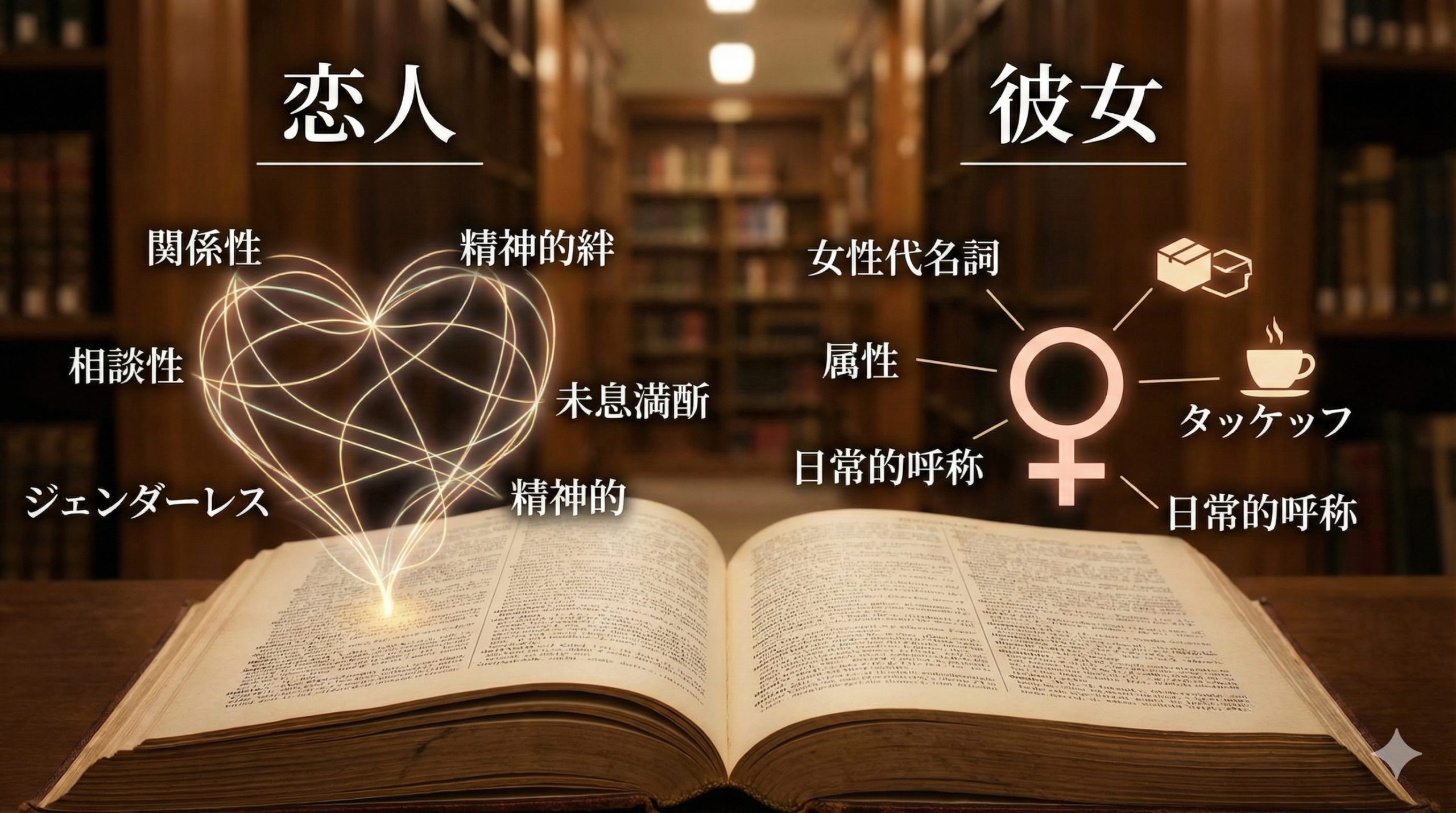 まず初めに、「恋人」と「彼女」という言葉が持つ本来の意味と、辞書的な定義における違いについて深く掘り下げていきます。言葉の成り立ちや性別の概念、指し示す範囲の違いを理解することで、両者の根本的な差異が浮き彫りになります。